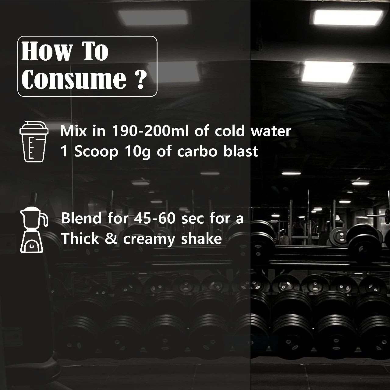 Mix 1 scoop (approx. 100g) with 300–400ml water or milk for fast glycogen recovery.