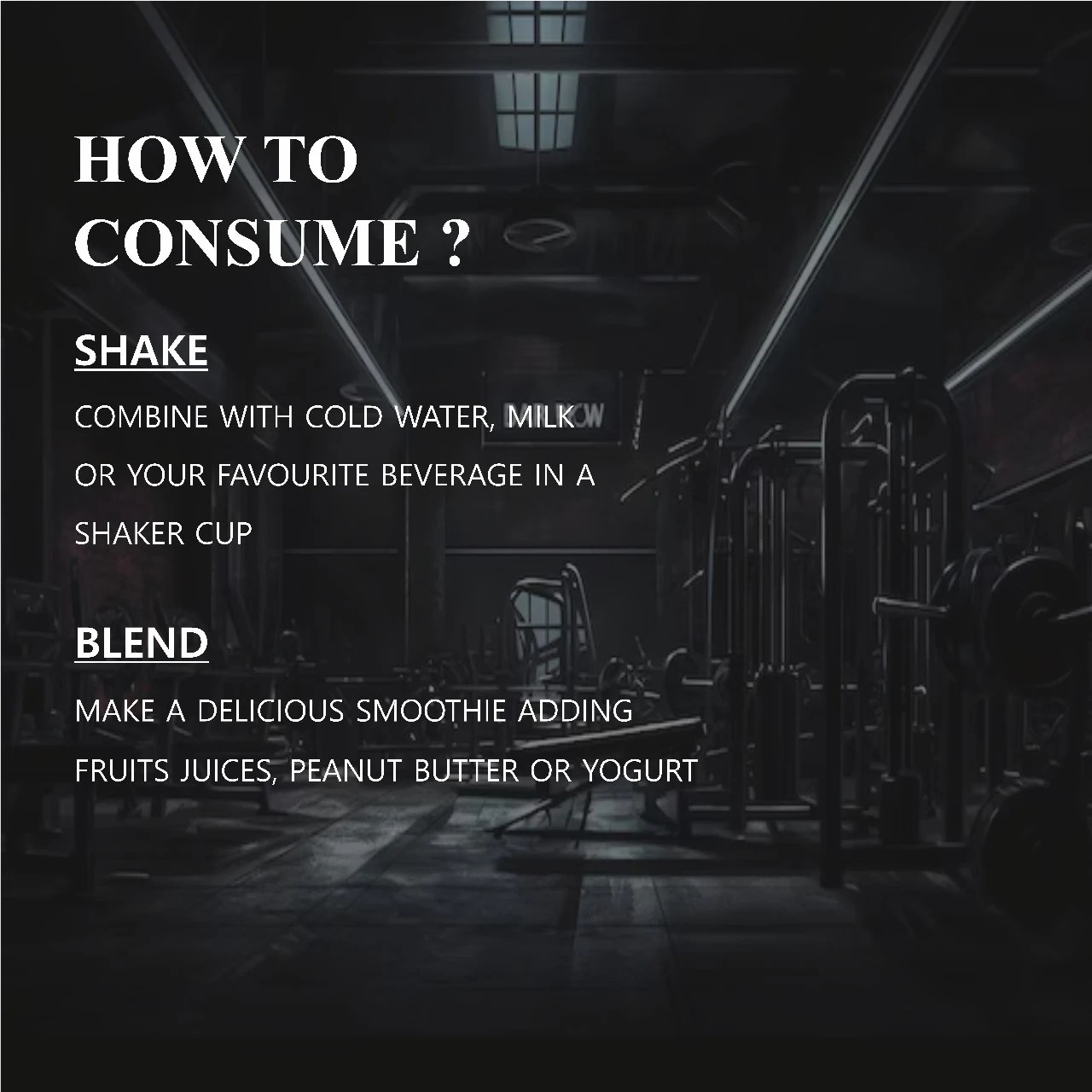 • Consult your fitness coach or nutritionist for best usage